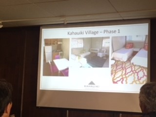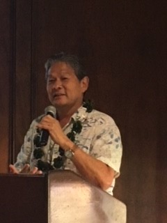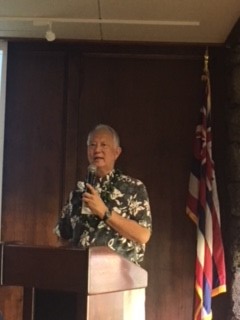 The Aloha Chapter met for its quarterly luncheon meeting on Friday, September 07, 2018, at the Oahu Country Club to hear a presentation by Mel Kaneshige and Duane Kirisu describing their innovative and successful low-income-homeless residential project, Kahauiki Village. Located on state property at Sand Island, on a vacant 11.3 acre commercial-industrial parcel near Honolulu’s commeercial waterfront, the project presently houses 30 families in 18 2-bedroom 540 sq. ft. and 12 1 -bedroom 324 sq. ft. units consisting of reassembled and refurbished units which formerly held evacuees from Japan’s earthquake in 2008. To qualify for occupancy, a family must be coming from a transitional residential facility for the homeless – mainly from the Institute for Human Services which also manages the Village- and have access to employment income sufficient to cover the rent of $900 a month for the 2-bedroom units and $725 a month for the one-bedroom units. The housing is not transitional: residents may stay as long as the rent is paid; the state has leased the land (for one dollar) for an initial 10-year period, renewable for an additional 10 years. The first phase took only 6 months to complete – housing units, laundry, recreational center and day-care center – and when fully built out in 2020 the Village will have a total of 144 units, at a cost of $115,000 per unit. Including all utility costs pro rated., housing over 600 formerly homeless people. The Village is within walking distance of a public elementary school. Several local businesses contributed furniture and appliances. The Village and its purpose appears to be a rousing success, and the two presenters – one a retired executive with a major hotel management and construction corporation – received a rousing round of applause.