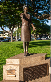 Hon. Patsy T. Mink (1927-2002) is credited with the passage of Title IX, a civil rights law that prevents discrimination in federally funded educational institutions. which recently marked its fiftieth year. Mink was the first woman of color to serve in the US House of Representatives and the first Asian American woman to run for President. The life-sized bronze statue of her, created by Holly Young of Hawaii, is located in front of the Hawaii State Public Library. It is surrounded by low marble walls upon which are etched famous saying by Mink.
