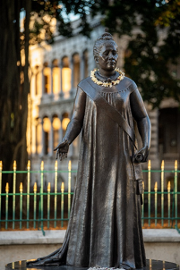 The two times life size statue of her was commissioned to Marianna Pineda. Pineda studied her subject for over four years before creating this regal piece, standing in pride, demonstrating her qualities of "courage, compassion, and capacity for endurance." The statue is located outside the State Capitol building.