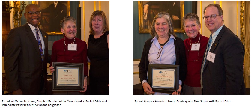 Kudos to Tara Clifford, as Chair of the Awards Committee, who presented Rachel Edds with a well-deserved Chapter Member of the Year Award! And a Special Chapter Award to “Transform Baltimore” was presented to Tom Stosur and Laurie Feinberg of the Baltimore Department of Planning in recognition of their leadership and dedication planning for Baltimore’s future. Transform is Baltimore’s new zoning code adopted December 5, 2016. (Fellow LAI member Les Pollock’s Chicago based firm Camiros Ltd. was hired as a consultant). Prior to Transform, the Baltimore City Zoning Code was last comprehensively updated in 1971.