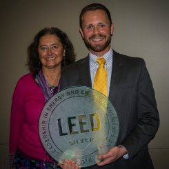 Holly Elmore and Tim Trefzer with the GWCC GOLD LEED Certification plaque. Photo courtesy of Elemental Impact. |