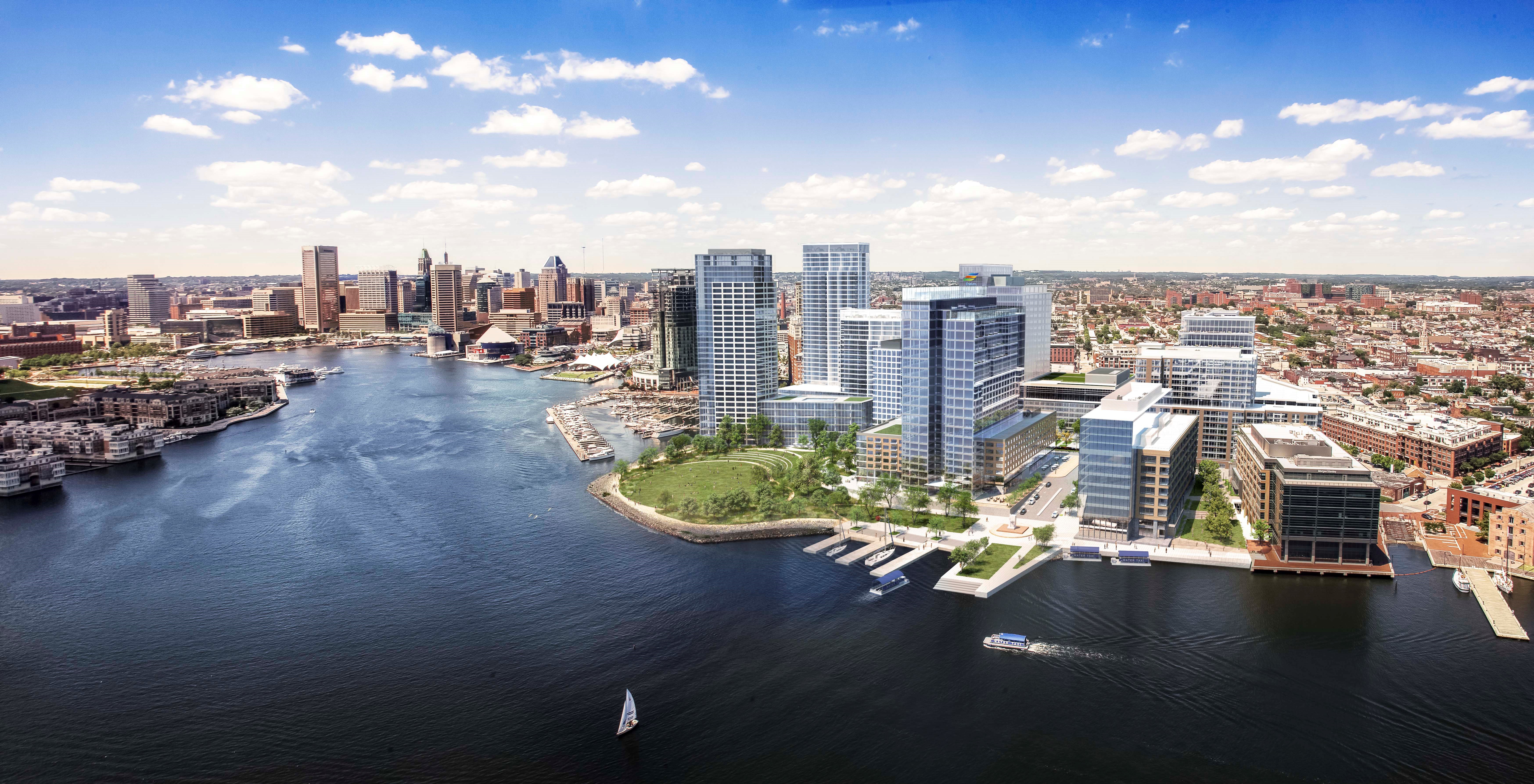 Harbor Point is a 27-acre site planned to contain 3 million square feet of development, including 1.6 million square feet of office space (anchored by the recently completed Exelon Corporation building), 200,000 square feet of retail space, 1,000 residential units, 600+ hotel rooms, 3,300 parking spaces and 9.5 acres of green, open space.