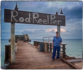![]() Steve Gragg at the Rod & Reel Pier & Restaurant, the first stop on Holly’s SRQ Tour. Recent Hurricanes Helene and Milton literally obliterated the iconic restaurant built in 1947; only the sign remains. Photo courtesy of Holly Elmore Images |