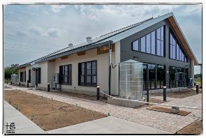 Glass walls and windows within the EC are Halio Smart Glass, the only dynamic glass that tints in real-time to optimal levels as daylight changes. Per the 4Roots executive director, the smart glass deciphers weather conditions and communicates to the building operating system with commands such as turn on fans, turn up the air conditioning, open windows, etc.
