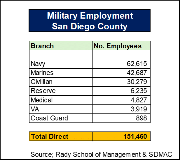 Obviously, the military dominates the San Diego economy with 150,000+ personnel in addition to its expenditures for military hardware: