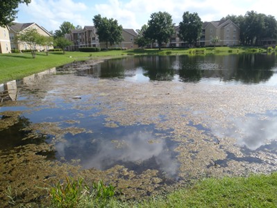 ![]() Algal blooms in contaminated retention ponds are common and release toxins into the local waterways that flow into the Gulf of Mexico. |
