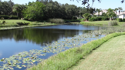 ![]() Remediated ponds with ample shoreline foliage are healthy environments that support local wildlife. Image from the retention at LAI at-large member Charles Reith’s Mira Lago home and neighborhood. |